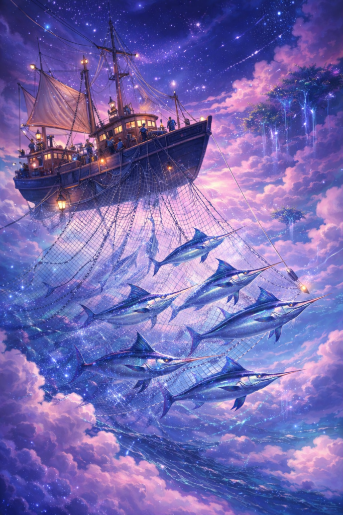 Aetherfish are small, translucent sky fish that drift in loose schools near long-established sky routes. They are harvested carefully, as overfishing can disrupt local air patterns.