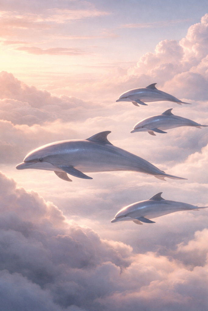 Sailors regard them as favorable omens. Sky dolphins are curious but cautious, and while they are known to escort vessels for a time, they avoid prolonged contact with mortal settlements.