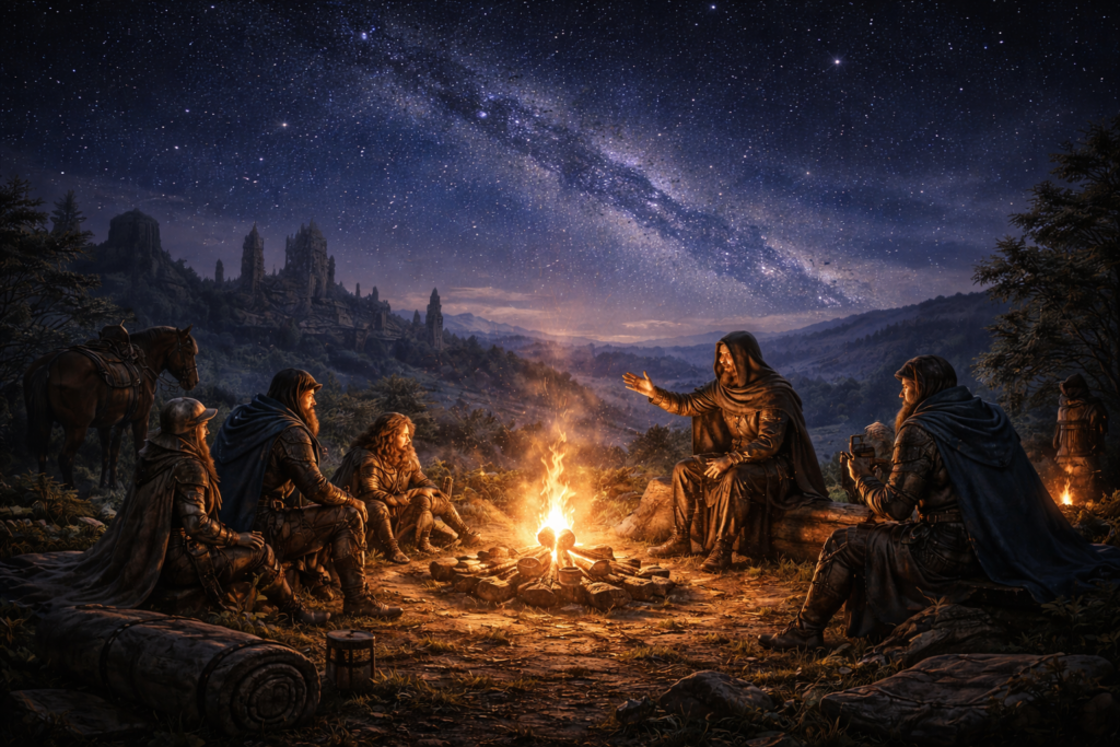 People tell stories at night because the dark listens. Across Pathalis, myths survive not because they are accurate, but because they endure. No two regions agree on the details. That is expected.